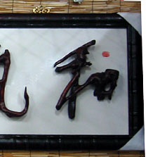 この作品は、右から読み”和気生財”となり、意味は、”温和な態度で人と接すると、人間関係がよくなり、商売が繁盛する”です。