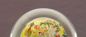 大観園で金陵12釵が戯れている絵が描かれている水晶球。ケース付。