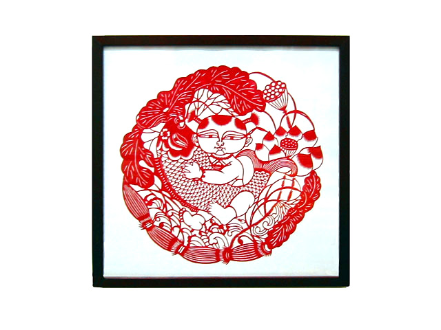 子供、魚,蓮の絵柄で、中国では魚を「ユィ」といい、「有余(=有り余る)」と同じ発音であるため、富と幸福のシンボルとされる。