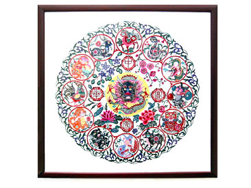 ドラゴンの周りを十二支で取り囲み、綺麗に色づけされています。