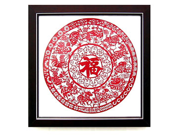 福の周りを十二支で取り囲んだ、伝統きり絵。