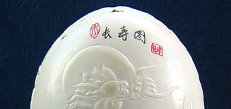 表には麒麟が、裏には龍が、彫られています。横には、松が彫られています。