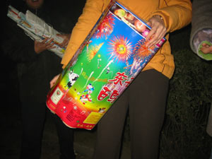 | 1月29日は、旧暦のお正月。中国では、家族と一緒に過ごす大切な日。爆竹や花火を上げみんなで祝う。 12年ぶりの北京で花火解禁令。みんなこぞって、花火を上げていました。その様子をチョット紹介。 *以前の花火は、どこでも好き勝手に花火をする人がいたり、品質が悪い花火があったりして、 けが人、死亡者や火事が後を絶たなかった為、禁止になったが、今年から花火の品質管理、 販売店、花火をする場所を徹底した為、今年から解禁になった。 |
