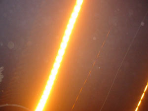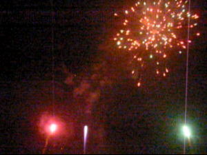 これは、上の花火が、打ちあがった瞬間の写真だ。 これには、僕もビビった。 見てもらうと分かるが、後ろの光線が普通の花火で、 前の光線が先ほど紹介した花火。桁違いに大きい。 大砲でも撃ったかのような火柱の上がり方だ。 撃ちあがった瞬間、鼓膜が破れて、気を失うぐらいの爆音。 生まれて初めて、花火に恐怖を感じた瞬間だった。 |