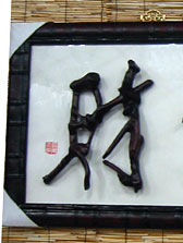 この作品は、右から読み”和気生財”となり、意味は、”温和な態度で人と接すると、人間関係がよくなり、商売が繁盛する”です。