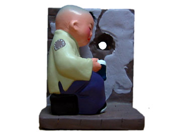 昔々ある若者は、本読むことが大好きだったが、家が貧しくて灯りを買うお金がないので、壁に穴を開けて隣から差し込む光で本を読んだという故事からの作品。