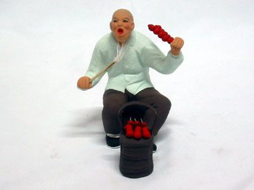 日本のりんご飴のような食べ物で、サンザシまたは果物を串に刺し、砂糖を煮溶かしたものをつけて固めた菓子。中国北部の冬の庶民的な食べ物。氷糖葫芦とも言う。