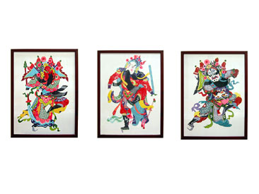 京劇の劉備、関羽、張飛のきり絵セット。