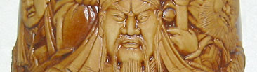 関羽は本を持ち、関平は印鑑を持ち、周倉は青竜偃月刀を持っています。