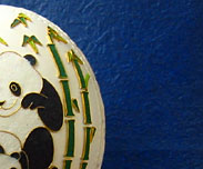 このパンダは、90年の北京アジア大会のマスコットのパンパン([目分][目分])で、七宝焼・景泰藍(チンタイラン)の技術を使って描かれております。