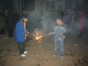 | 1月29日は、旧暦のお正月。中国では、家族と一緒に過ごす大切な日。爆竹や花火を上げみんなで祝う。 12年ぶりの北京で花火解禁令。みんなこぞって、花火を上げていました。その様子をチョット紹介。 *以前の花火は、どこでも好き勝手に花火をする人がいたり、品質が悪い花火があったりして、 けが人、死亡者や火事が後を絶たなかった為、禁止になったが、今年から花火の品質管理、 販売店、花火をする場所を徹底した為、今年から解禁になった。 |